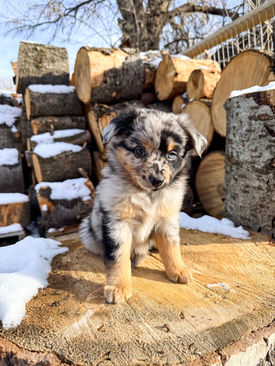 Pheobe comes from Panhandle Aussies where they specialize in excellent temperament. Pheobe is a credit to her genetics. She was an astonishingly easy puppy. She is friendly, tolerant, kind and gentle. She is also very playful and silly. We love her darling way of expressing herself. Phoebe is now retired and living her best life nearby, with my sister's family. We could not have let this beloved girl go to just anyone, and we love that we still get to see her and have her come stay with us on a regular basis!