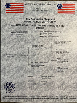 Registration: (DUAL) AKC Miniature American Shepherd and ASDR Miniature Australian Shepherd
